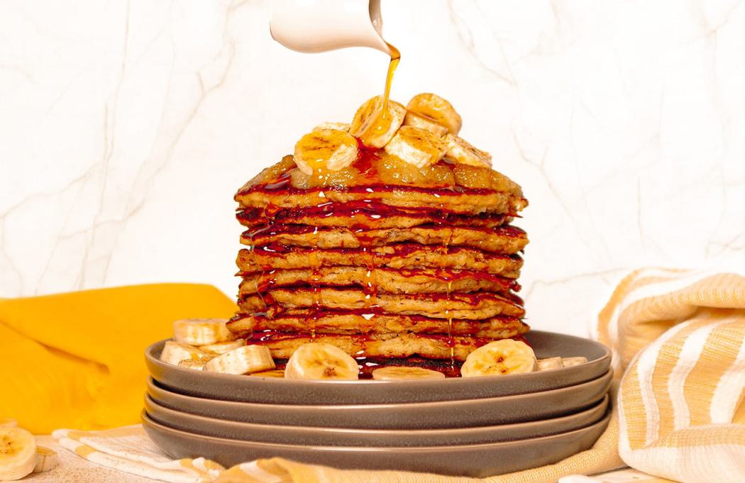 Hearty oat pancakes with a hint of sweet applesauce make for stick-to-your-ribs breakfast.