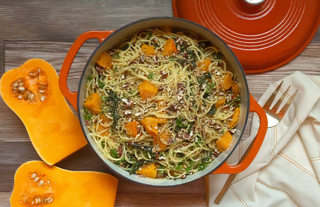 Welcome fall to the table with this Butternut Squash Pasta. Toasted pecans and breadcrumbs add a crunch worthy of fall leaves.