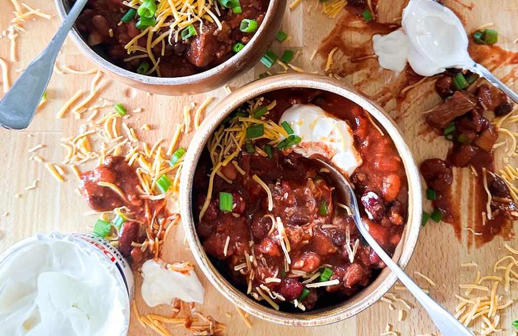 Whether you’re making a big pot for a Sunday football game or just need an easy way to warm up a winter evening, this meaty chili will fit the bill.